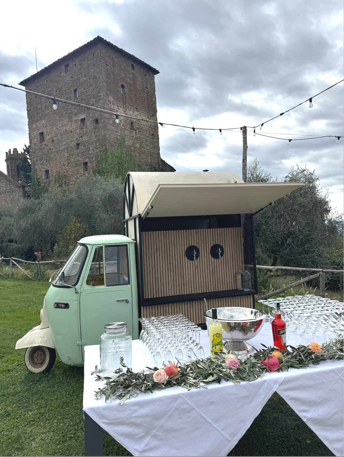 One of the details our couples and their guests tend to love most are our mobile ‘Ape’ bars. We have two vintage Italian Ape trucks onsite. One set up as a Prosecco, beer & spritz truck, and the other as a full cocktail bar.